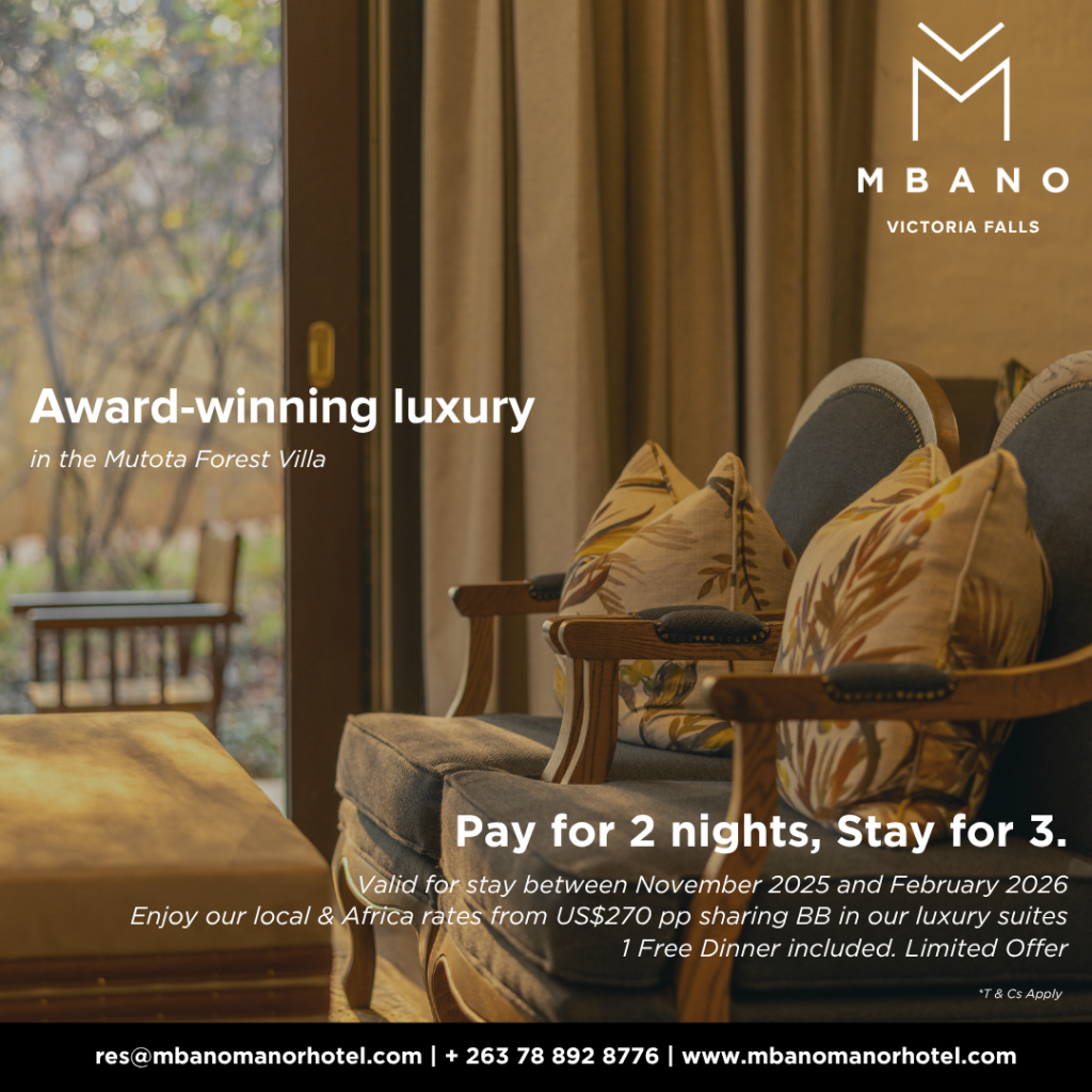 Enjoy our Local & Africa rates from US$270 per person bed & breakfast sharing. Pay for 2 Nights. Stay for 3. Contact our Reservations team on res@mbanomanorhotel.com or +263 78 892 8776 to make your booking. Limited offer valid between November 2025 – February 2026.